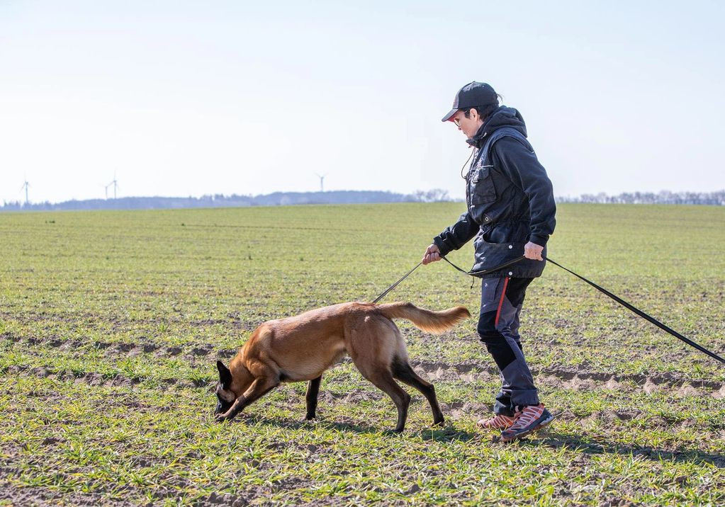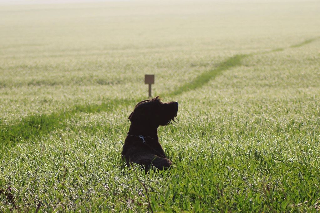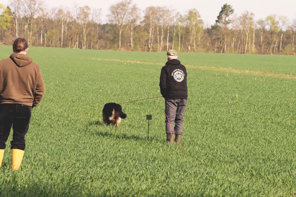 Bei der Stöberprüfung sucht der Hund frei in einem bestimmten Abschnitt nach verschiedenen Gegenständen und zeigt diese seinen Hundeführer an.